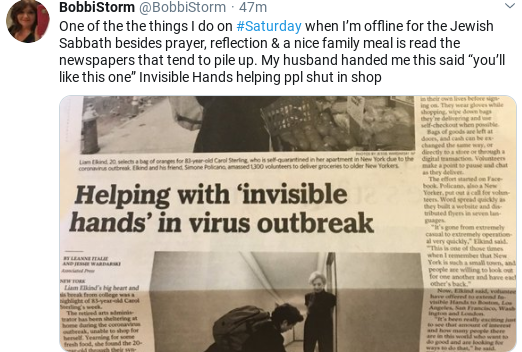 That is so beautiful and I suggest you share that video with someone who feels down, depressed and hopeless and that pretty much describes most of us at some point of our day when reading about people in need of prayer or who have died. I'm really trying to balance my time between prayer and taking time to breathe, refresh my mind and soul and then I go back to praying with friends in Crown Heights and Florida who are in prayer groups for relatives. You gotta do what you gotta do and if my allergies weren't an issue I'd take a long walk along the golf course across the street and stare in wonder at the flowers in bloom ... but the pollen wouldn't be good for my system so I probably won't. A friend and distant cousin posted this beautiful picture the other day in honor of the medical and public service people who are risking their lives to help us all.